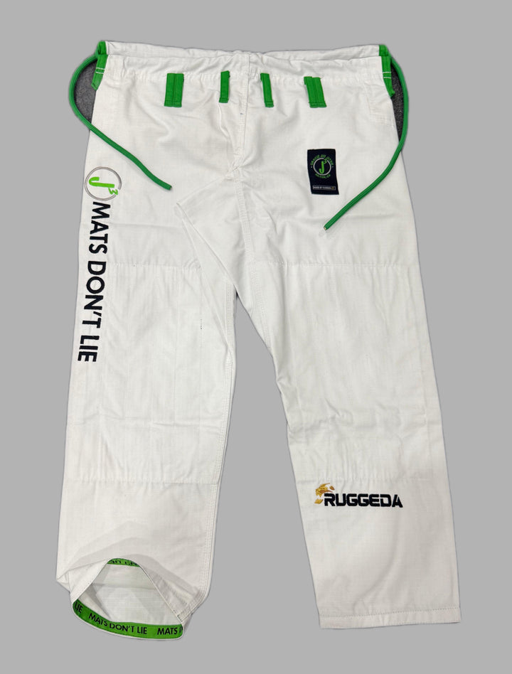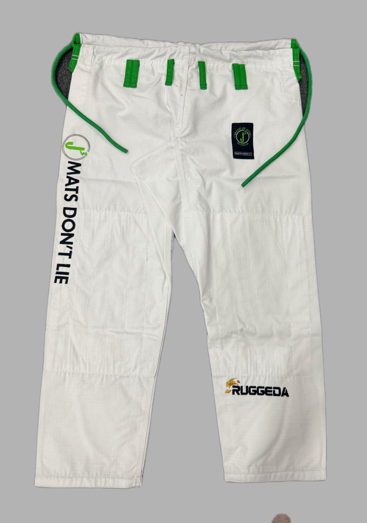 J3 Academy “Mats Don’t Lie” Signature BJJ Gi – White & Green Edition