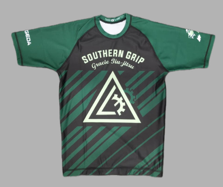 Stand out on the mats with the Southern Grip short-sleeve rash guard — a sleek, competition-ready design inspired by the identity of J3 Academy in Milton, GA. Built for athletes who demand durability, comfort, and style.